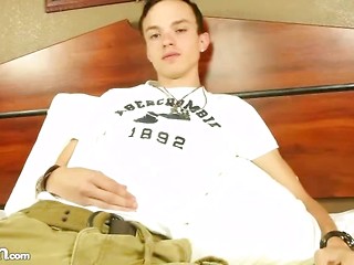 Sexy, slender Shane Rogers stroking his 8-incher.