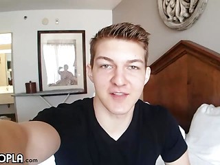 Horny blond twink savours every inch of Robie Kasl’s monster uncut dick! HD