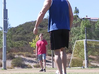 Horny masseur gives his soccer star client a hot rub-down & a full-on sticky facial!