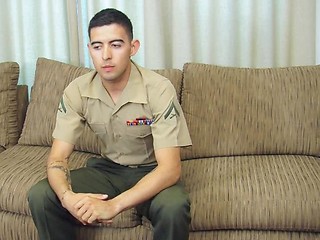 Hot beefy military dude jerking his cock off in here !