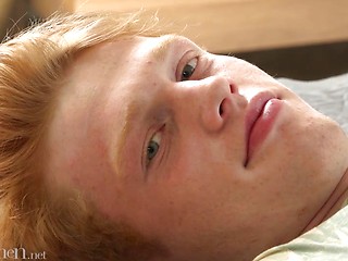 Slim uncut twink Andreas shoots a load