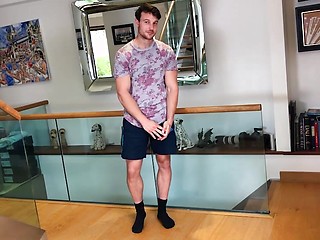 Muscular Straight Lad Max Undresses & Wanks his Big Uncut Cock