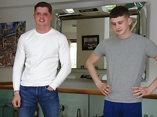Young Straight Lad Charlie's 1st Man Wank with Jack's Thick Uncut Cock & Jack Cums Over His Shoulder!