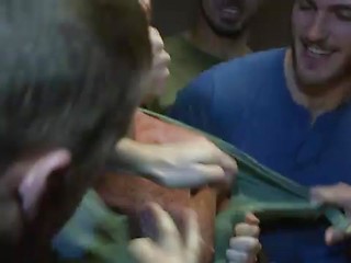 Nasty Bartender Humiliated and Gang Fucked by Angry Crowd