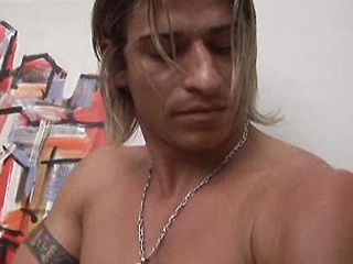 Uk exclusive, Mickey Taylor, demonstrates his inked solo antics with a jizz-load of cum!