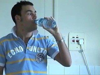 Hairy daddy Thomas Steele strokes dick and takes a shower